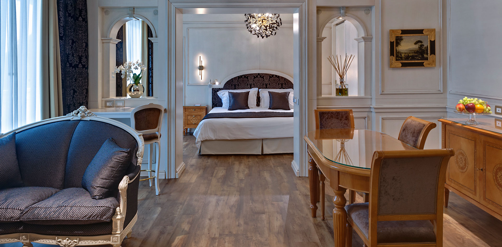 Se desiderate sentirvi unici, questa è la camera che fa per voi. Unica camera di questa tipologia, è situata nel “cuore” del Tritone, al terzo piano. Questa Suite offre un ambiente dagli arredi classici e raffinati, mobili in legno dalle tonalità chiare e tessuti dai colori caldi.