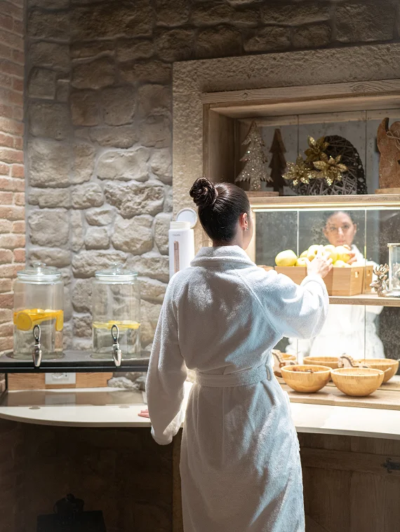 Il vapore aromatico avvolge il corpo. Il calore umido pulisce e idrata la pelle e ne regola il PH.
