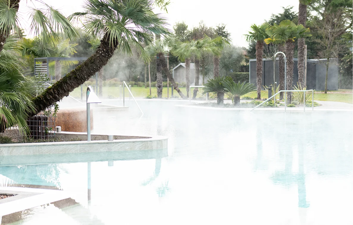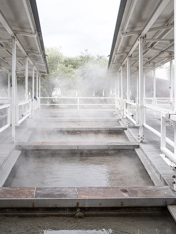 Recuperiamo l’acqua termale esausta per alimentare i circuiti non potabili e monitoriamo i consumi con sensori elettronici in ogni reparto. Insieme alle terrazze verdi, che proteggono l’hotel dal calore e accolgono la pioggia, questo sistema minimizza il prelievo dalle falde e lo spreco di acqua potabile.